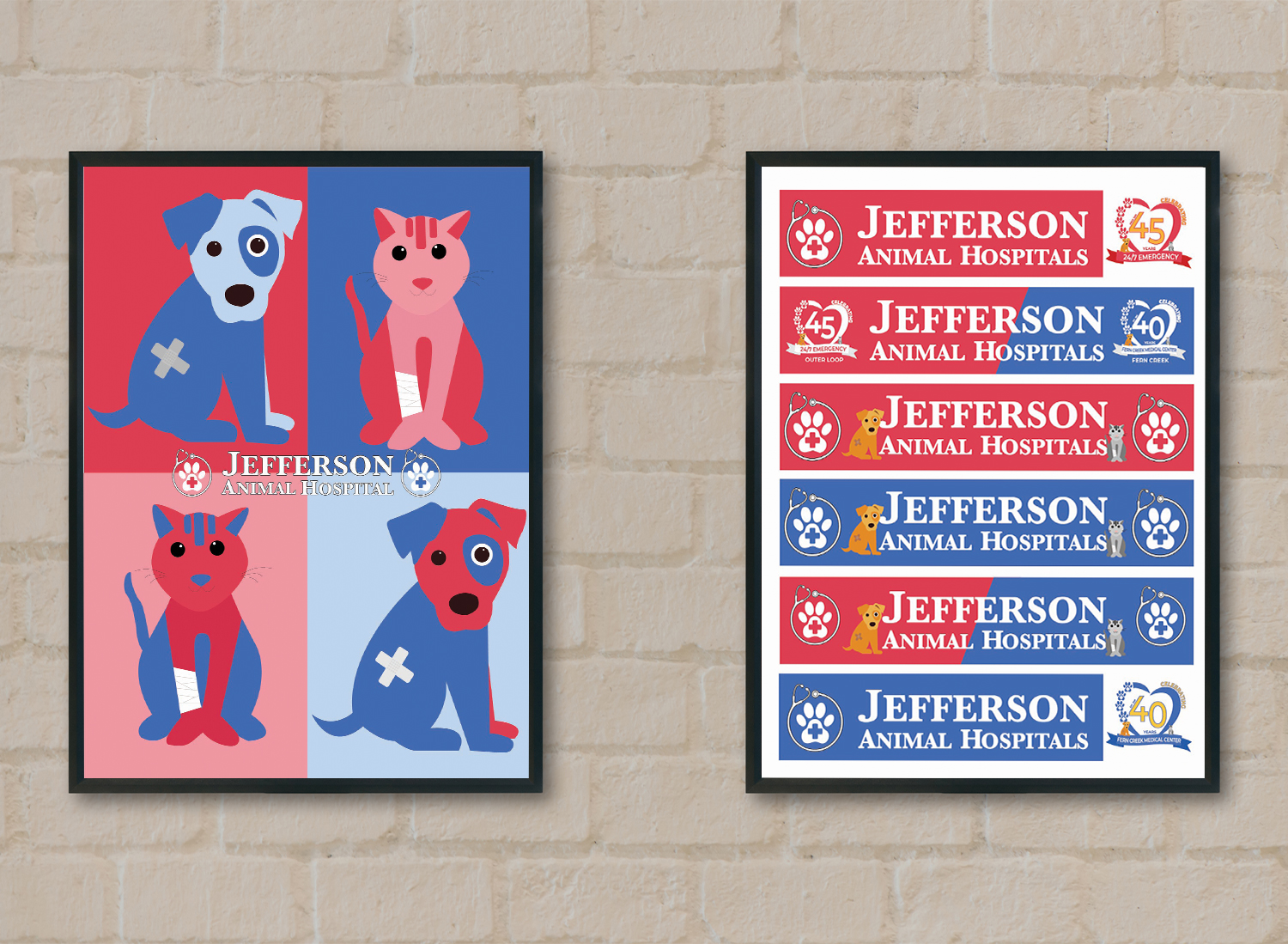 During my contract role with Jefferson Animal Hospital, I supported their marketing and branding efforts through a wide range of graphic design and promotional projects. I developed custom anniversary logos for their hospital locations, designed branded gear for community sports events, and created engaging promotional materials for clients. In addition, I assisted with planning and marketing their expansion ribbon-cutting event, ensuring brand consistency across all platforms. This role allowed me to contribute both creatively and strategically to strengthen their community presence and highlight their commitment to veterinary care.